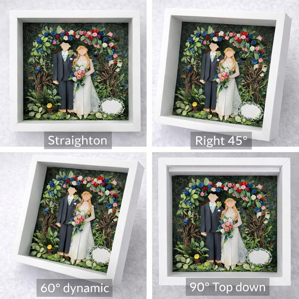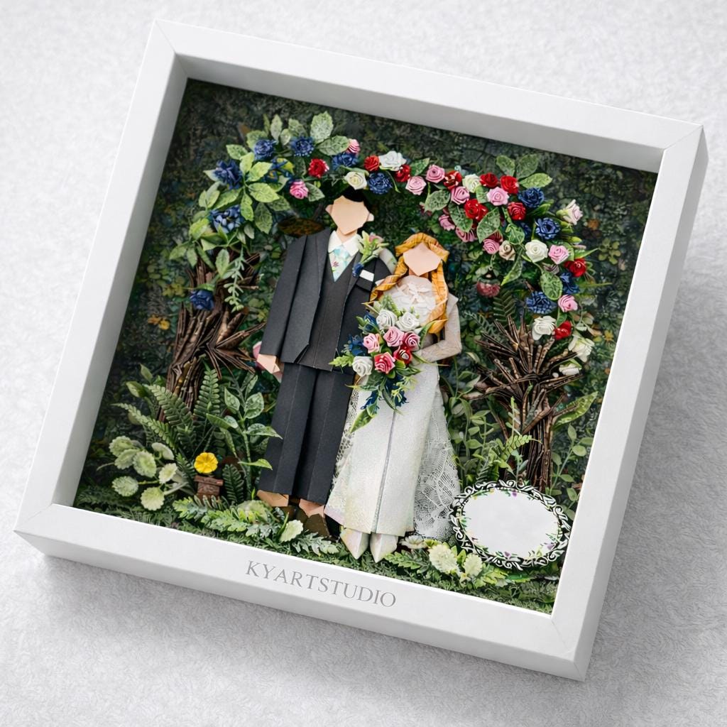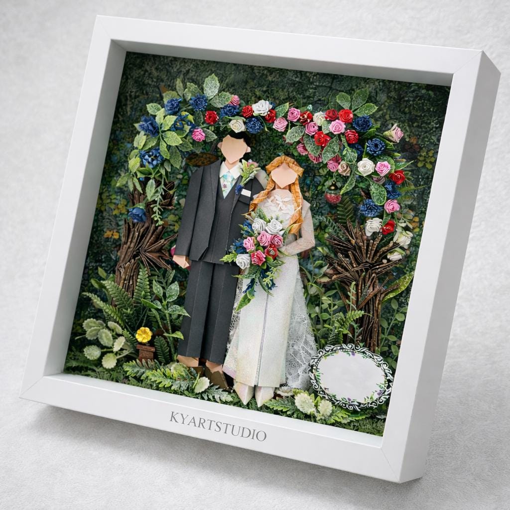This paper artwork captures a wedding moment that quietly steps beyond the frame.