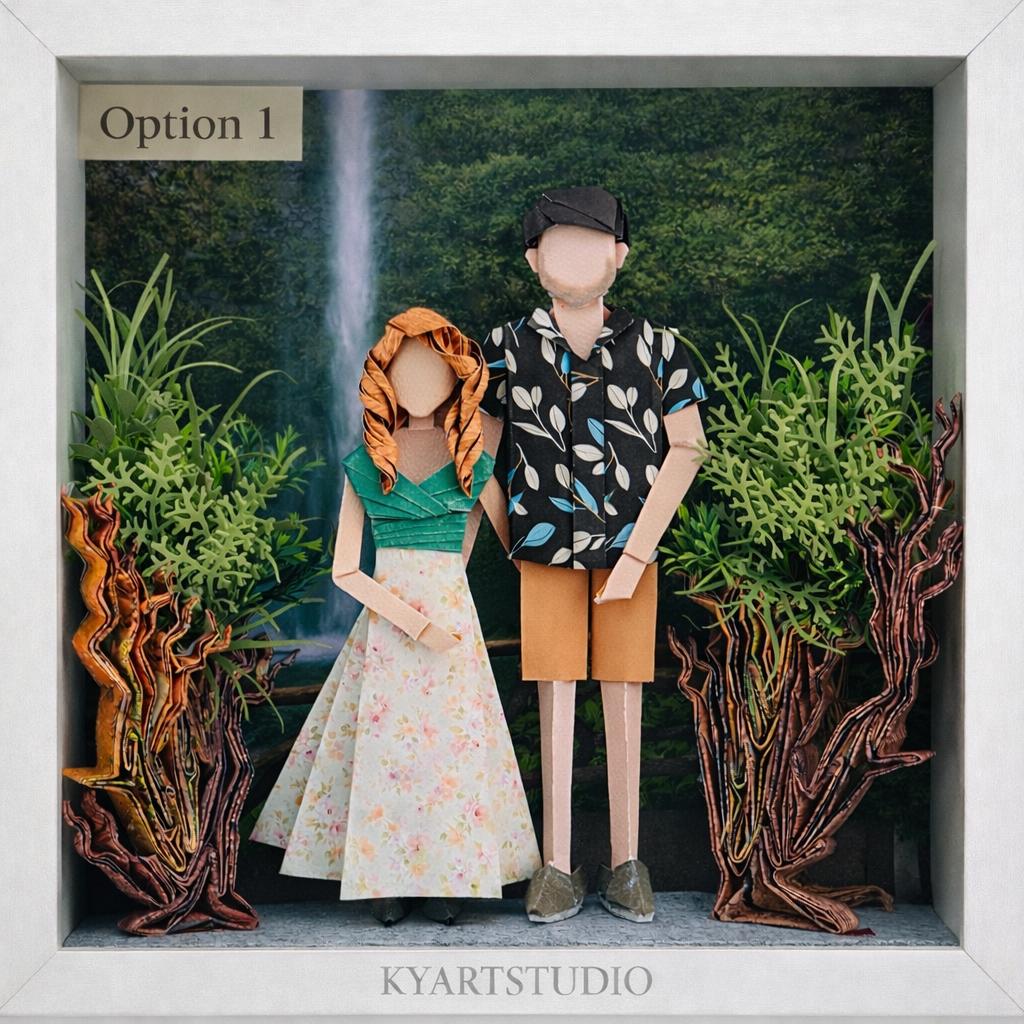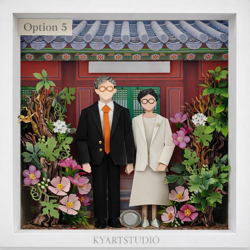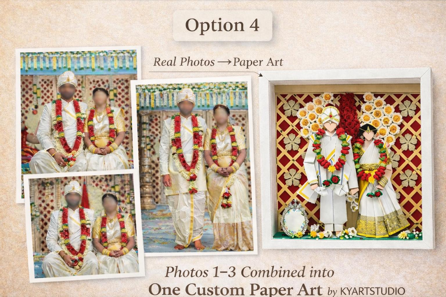This paper artwork captures a wedding moment that quietly steps beyond the frame.
